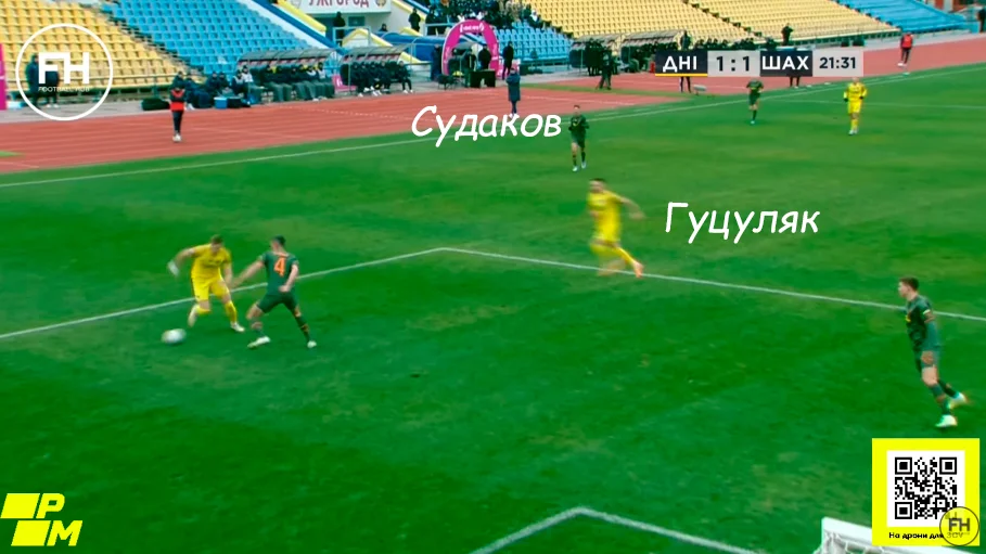 І тут вже виникають питання до Бондаренка й Судакова, які вальяжно повертались назад. Особливо це контрастує з ривками дніпровців до штрафного. Так, старт епізоду застав хавбеків у дуже високих позиціях, але часу повернутись вистачало – три опоненти його використали, а "гірники" залишились за їхніми спинами.