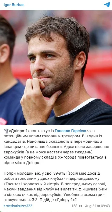 Наступним тренером СК Дніпро-1 може стати іспанець Гонсало Гарсія, повідомляє Ігор Бурбас.