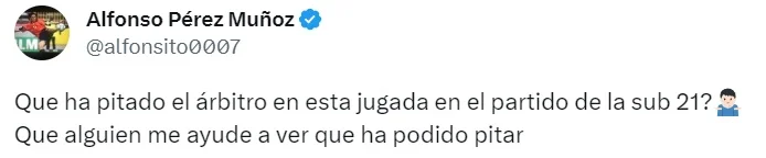 Сам Альфонсо Перес Муньйос (легендарний нападник Бетіса, Барси і збірної Іспанії – прим.) не вірить власним очам: “Що зафіксував рефері у матчі молодіжки? Нехай хтось допоможе мені розгледіти, що він там міг знайти”.