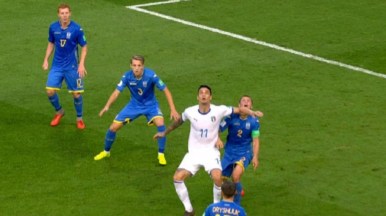 Скамакка після невдалого вибивання українців класно підробив м'яч та зрівняв рахунок. Італія побігла святкувати, але втрутився VAR – арбітр переглянув повтор і скасував взяття воріт через фол нападника!