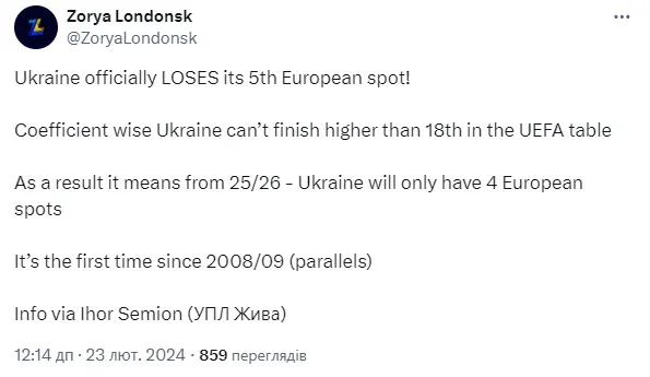 А ось і найболючіша звістка для всієї УПЛ. Виліт Шахтаря підсумував провальний сезон наших клубів у єврокубках. Це означає, що Україна офіційно втрачає п'ятого представника на міжнародній арені. Починаючи з кампанії 2025/26, "на Європу" виходитимуть лише чотири команди. Догралися!