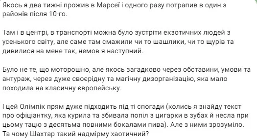 Коментатор Ігор Бойко (тг-канал "Противний голос") пригадав у контексті цього матчу свою екстремальну поїздку до Марселя.