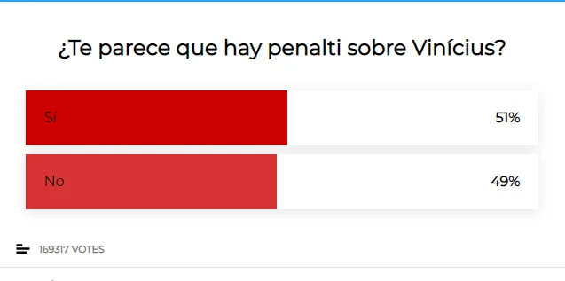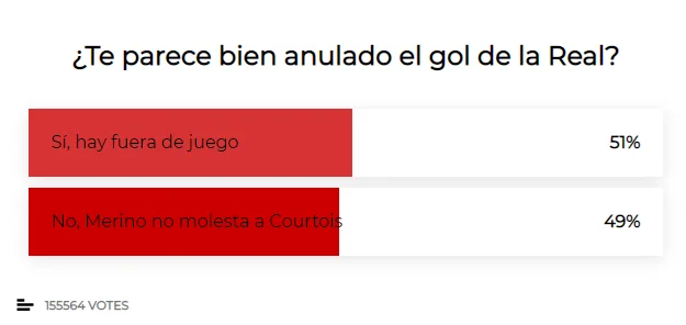 Авторитетна Marca, яка бачить "реально сильний Мадрид", попросила власних читачів оцінити рішення Естради Фернандеса... і вийшло не дуже переконливо. Голоси щодо падіння Вінісіуса та м'яча Янузая розділились фактично порівну, а прийом Бензема, за версією респондентів, більше законний, ніж навпаки. Підсумок опитування – сумніваються навіть прихильники королівського клубу. Цікаво, що експерт мадридського видання, колишній арбітр ФІФА Андухар Олівер, підтримав усі вердикти VAR на Аноеті, але цим вже мало кого здивуєш.