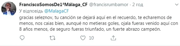 Селезньов покинув Малагу з жорстким тролінгом
