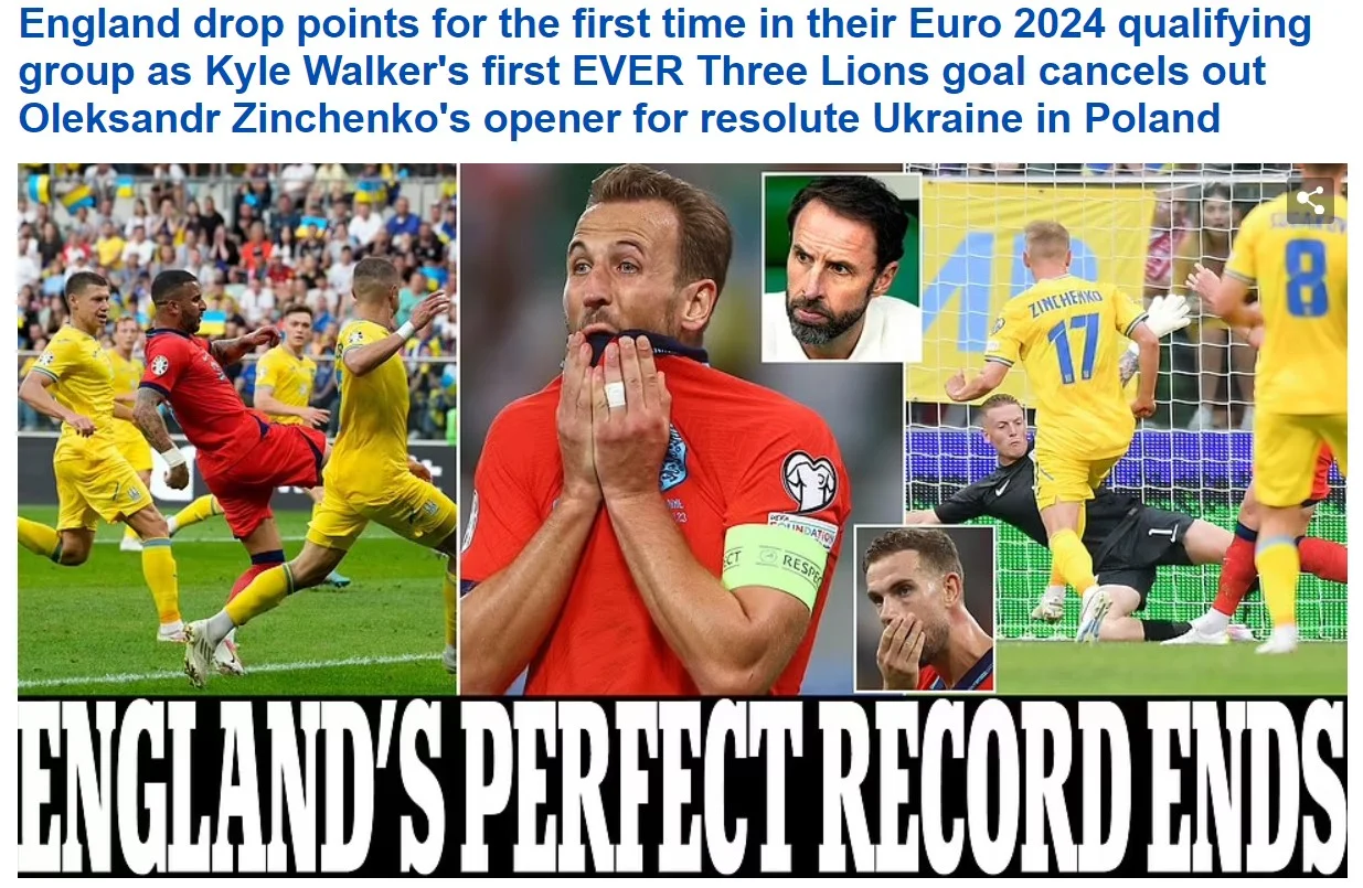 Збірна України розписала результативну нічию з фаворитами нашої групи. "Футбол 24" підготував реакцію англійських ЗМІ за мотивами матчу відбору Євро-2024.