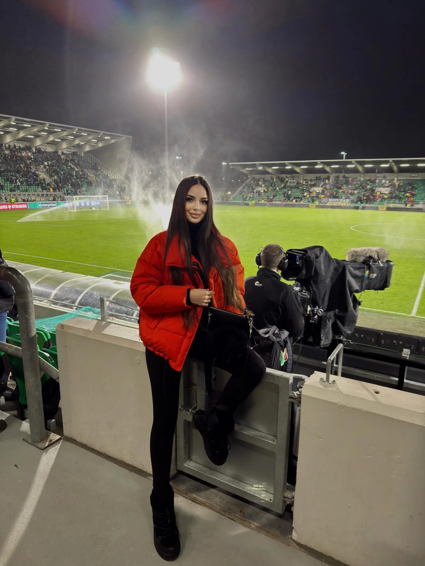 Після того, як я піднялася зі сходів і нарешті зайняла своє місце у медіазоні, стало видно, як стадіон поступово прокидається. Українських прапорів було не так багато, але самих українців – помітно, дуже помітно. А загалом арена виглядала заповненою десь наполовину нашими уболівальниками, наполовину місцевими. У секторі було кілька порожніх рядів, але загальна картинка все одно створювала відчуття хорошого, живого футболу – без порожнечі.