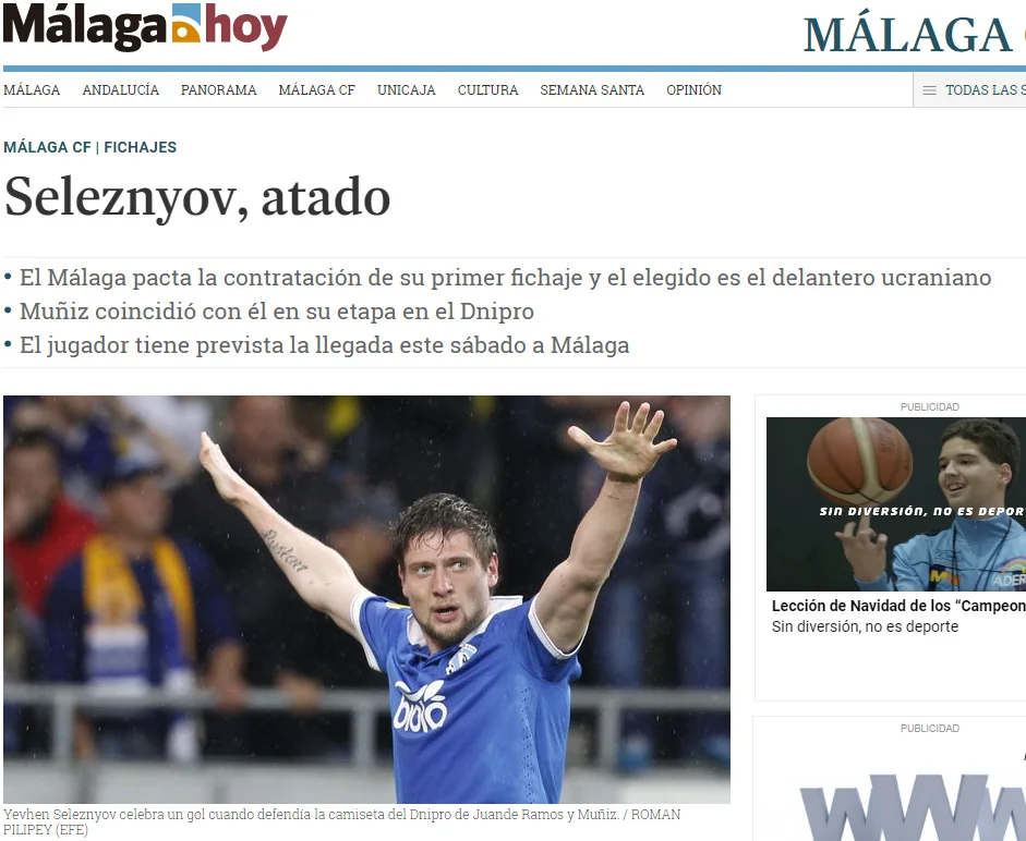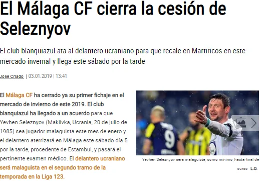 Трансфер Селезньова в іспанській пресі