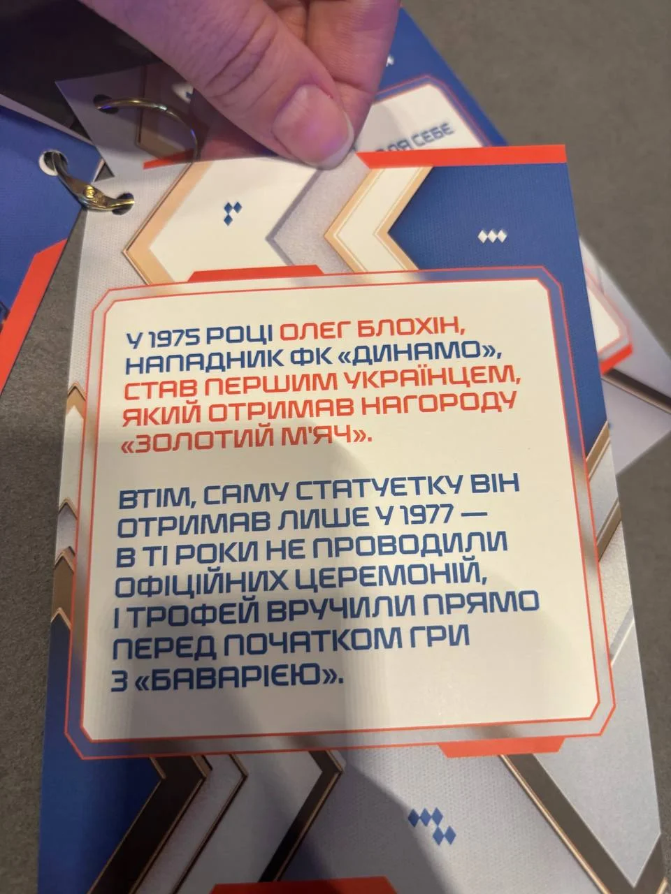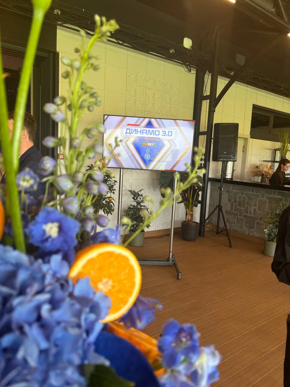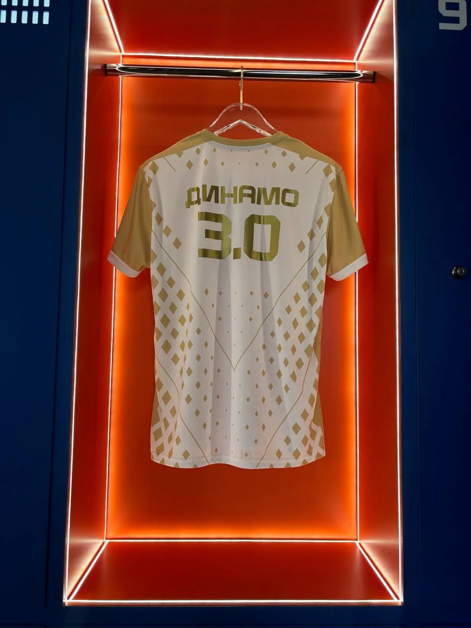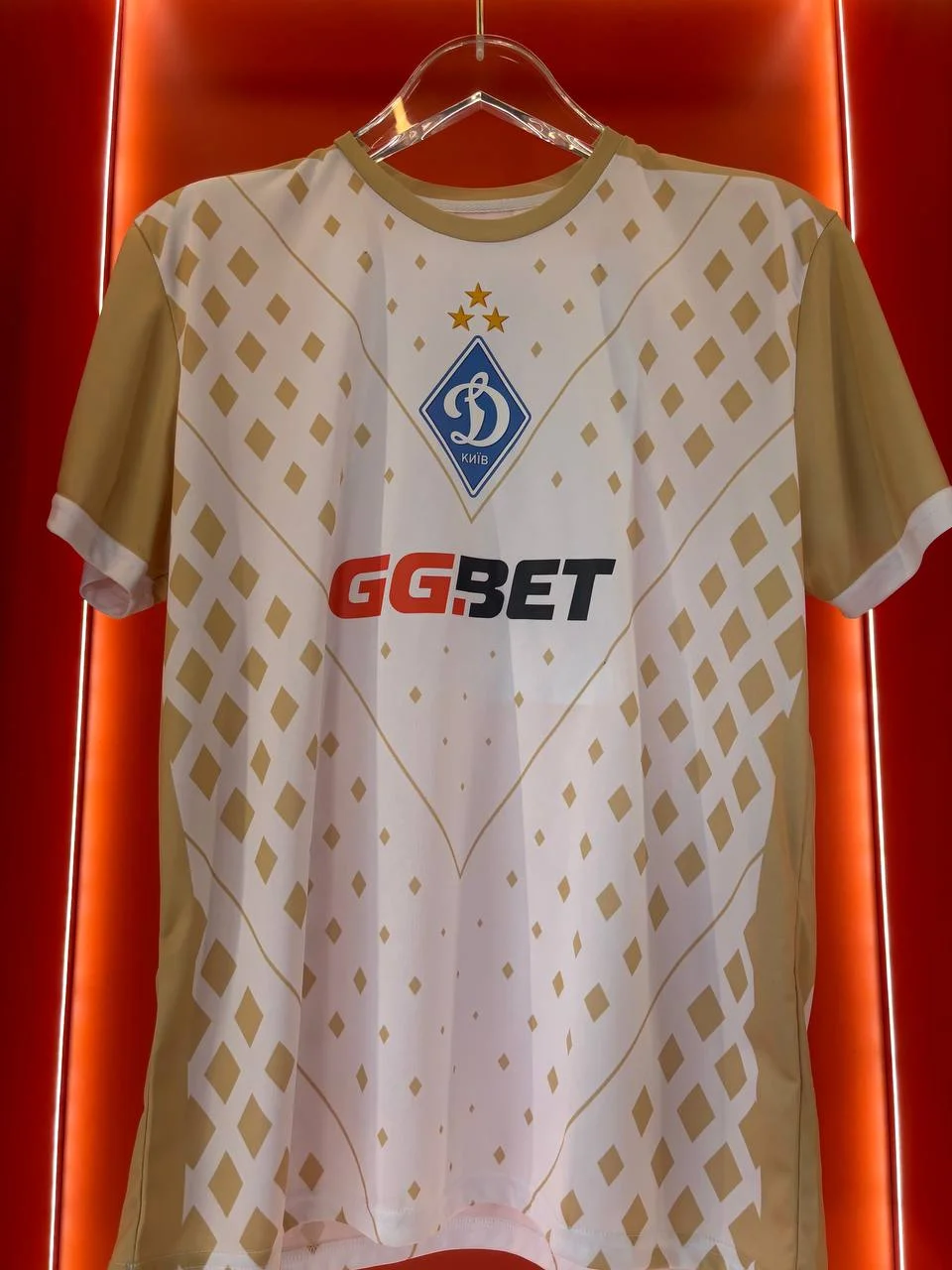 Одразу при вході в зал можна було побачити підготовлену зону з написом "Динамо 3.0". Саме там частково гравці відповідали на запитання журналістів після офіційної частини імпрези. Далі – стенд із футболкою в біло-золотих кольорах з логотипом GGBET та Динамо, а посередині красувався величний трофей чемпіона України. Футболка була зроблена спеціально для оголошення партнерства, тому це аж ніяк не офіційна форма. Її клуб представить трішки пізніше.