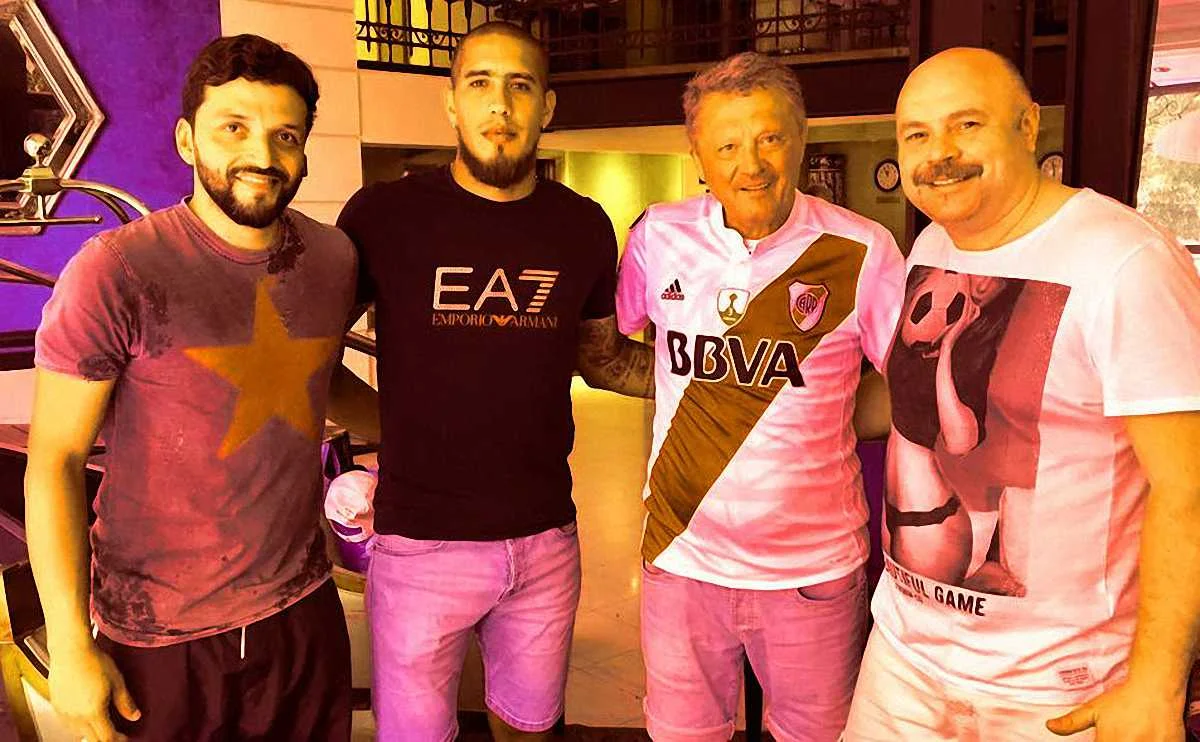 9. Після Бразилії українські корифеї перекочували в Аргентину. Там Мирон Маркевич зустрівся із колишнім підопічним у Металісті – Джонатаном Майданою. Джонні зараз капітанить у Рівер Плейт і привіз тренеру футболку своєї команди. Бачив би це фото, зроблене Олександром Гливінським, Дієго Марадона!