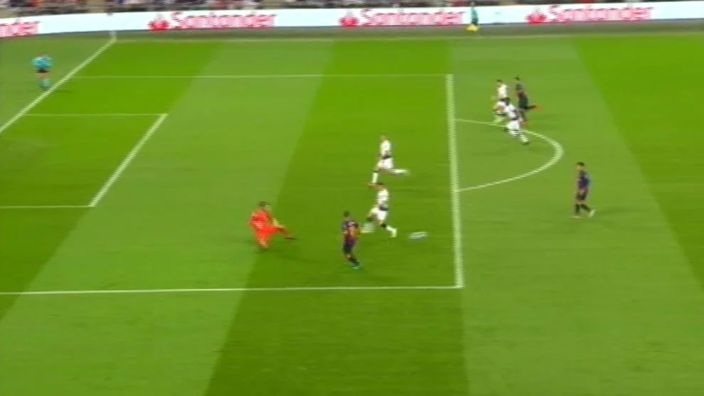 Ще один ефектний епізод у матчі відбувся на 32-й хвилині. Ламела виконував простріл зліва, Семеду зрізав м'яч у власні ворота, а тер Штеген, виконавши ефектний сейв, врятував свою команду від гола. Відтак, "блаугранас" заслужено пішли на перерву з перевагою у два м'ячі.