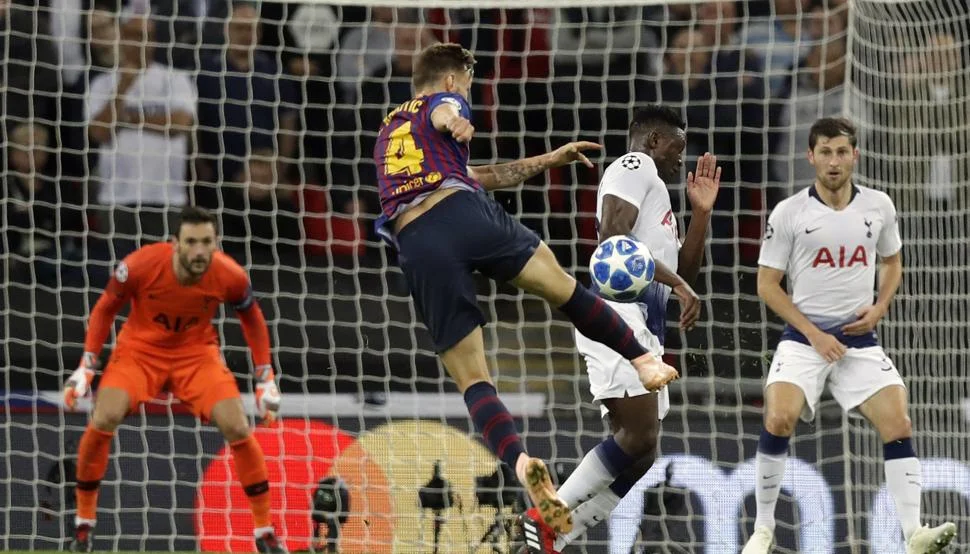 Барселона, видавши перед вояжем на Вемблі серію із трьох матчів без перемог, відкрила рахунок вже на 2-й хвилині. Лео Мессі розрізав усю оборону "шпор" фірмовою передачею на Жорді Альбу, а той виграв швидкісний забіг у Льоріса та викотив сферу під удар Коутінью. Бразилець з лінії штрафного майданчика технічно поцілив у вже порожній кут воріт.