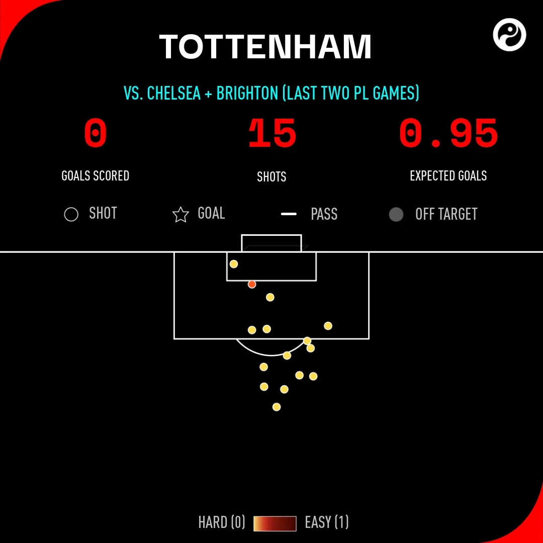 Без Кейна команда навіть перестала бити по воротах – за другий тайм проти Ліверпуля лондонці завдали всього одного удару, з Челсі було лишень три до 85-ї хвилини, а з Брайтоном "шпори" мали вісім пострілів проти шістнадцяти у "чайок". При цьому в останніх двох матчах Тоттенхем не награв навіть на один гол (0,95 xG).