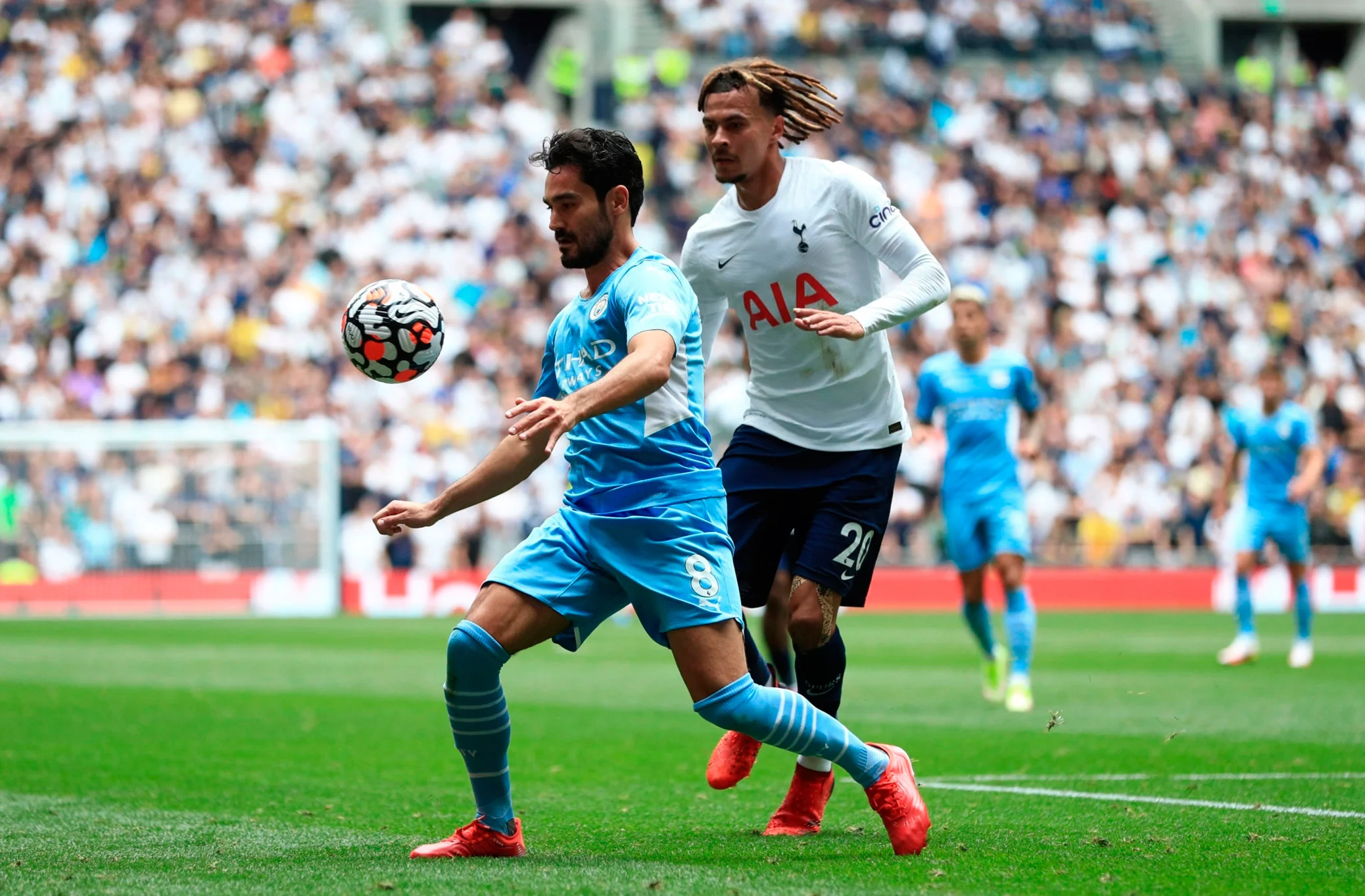 Після цього підопічні Пепа Гвардіоли провели ще кілька хороших атак, але поступово Тоттенхему вдалося вирівняти хід зустрічі. В середині першого тайму лондонці навіть почали створювати моменти, тікаючи у швидкісні контратаки. Так, на 30-й хвилині одна з них завершилась штрафним, після якого Едерсон помилився на виході, а Моура пробив у майже порожні ворота – гостей врятував Гюндоган, який виніс м'яч зі стрічки!