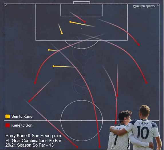Звідки й куди робив передачі Кейн на Сона в першій половині попереднього сезону