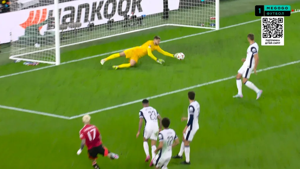 Підопічні Рубена Аморіма могли забивати після кутового на 16-й хвилині. Вікаріо не зміг далеко вибити подачу, Магвайр підібрав відскок і переправив м'яч праворуч, а Діалло обіграв захисника й вгатив з гострого кута. Сфера пройшла поруч з лівою стійкою!