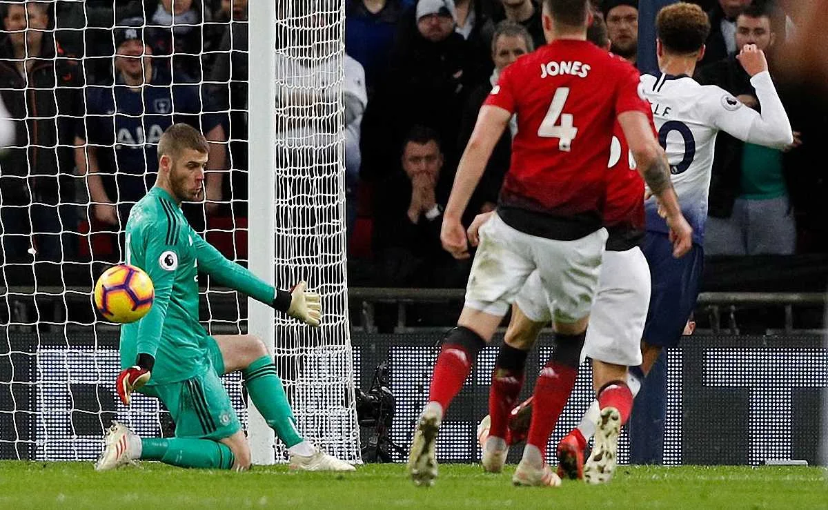 Тоттенхем активно пішов відігруватися відразу після відпочинку. І тут Давіду Де Хеа довелося попітніти. Якщо зі слабким ударом Сона іспанець впорався без проблем, то зберегти ворота "сухими", коли били Кейн і Аллі, було дуже складно. Харрі впритул розстрілював ДДХ внаслідок хорошої комбінації партнерів, але голкіпер МЮ згрупувався та відбив м'яч ногами.