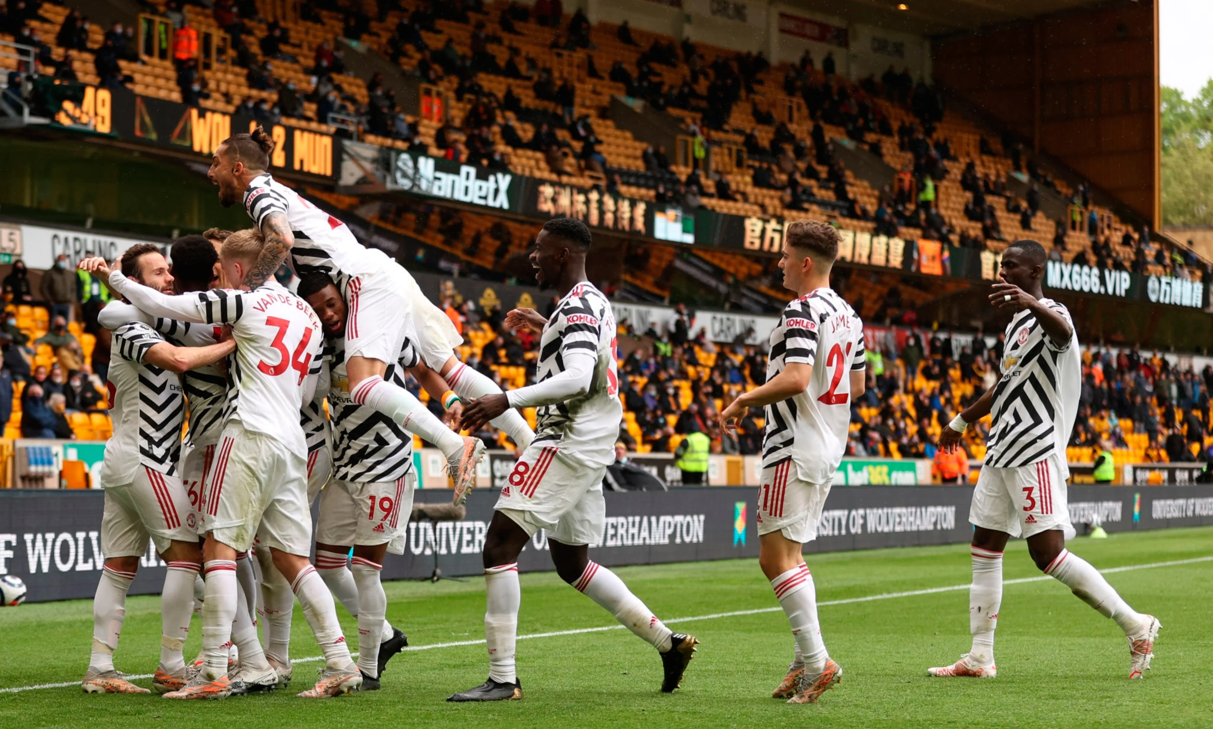 Тільки у матчі між Вулверхемптоном та МЮ на Молінью нічого не вирішувалось. В останніх трьох турах "червоні дияволи" зазнали двох поразок і розписали нічию, тож для гостей важливо було перемогти – втім, манкуніанці також не забували про фінал ЛЄ та Євро. Уле-Гуннар Сульшер вирішив довіритись голодній молоді та резервістам, а ті й не підвели: вже на 13-й хвилині юний нападник Еланга відкрив рахунок, замкнувши подачу від Джеймса – 1:0! "Вулвз" зрівняли на 40-й у контратаці з кволим пострілом Семеду, але на перерву команди відправились за переваги Манчестера – це Мата відзначився з пенальті.