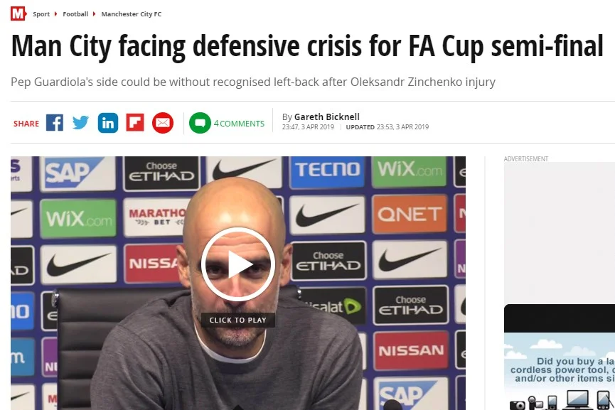 Mirror інформує, що Манчестер Сіті потрапив у захисну кризу перед півфіналом Кубка Англії.