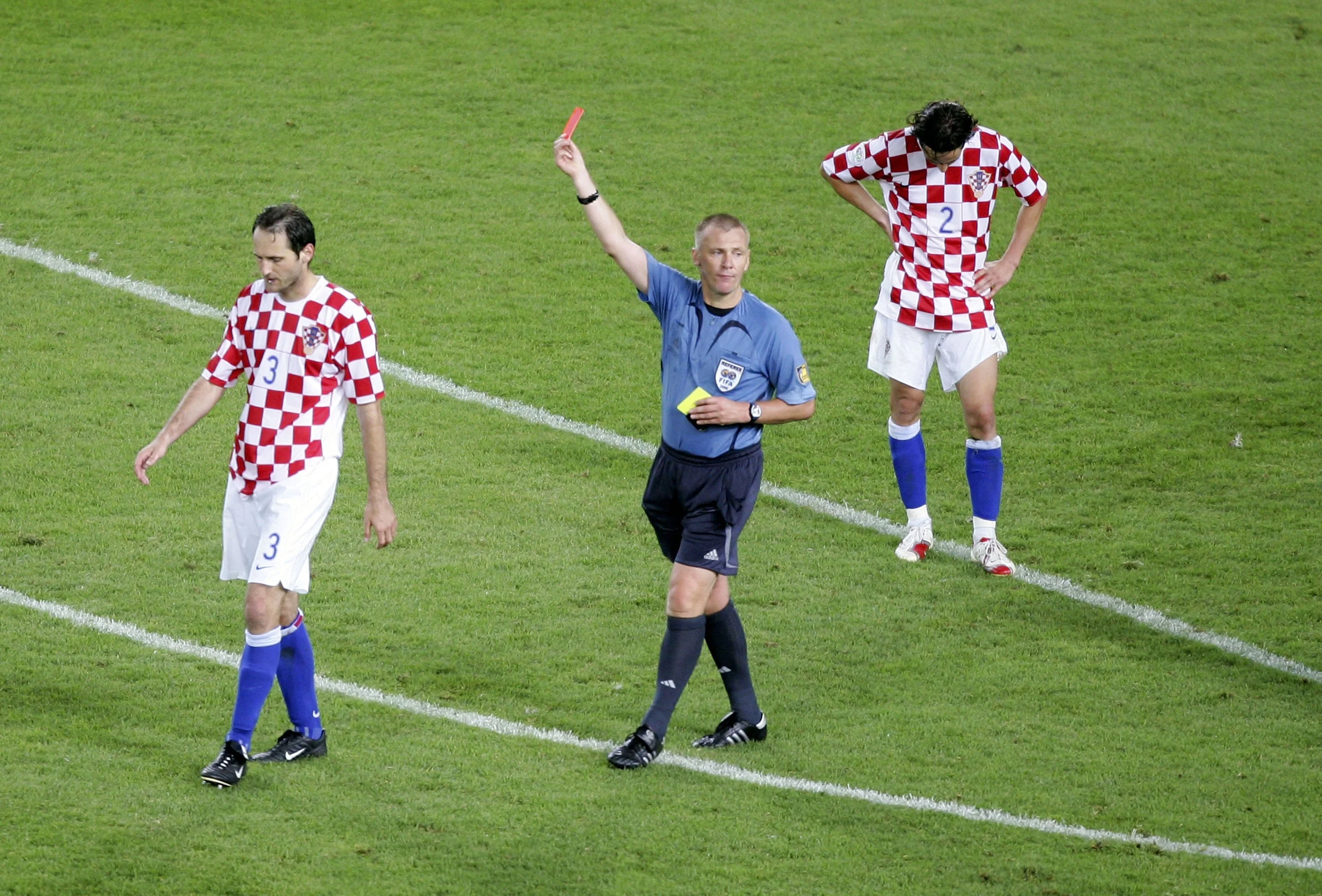 До завершення поєдинку залишалося 11 хвилин. Хорватію нічия не влаштовувала, тому підопічні Златко Кранчара кинулися в атаку. Проте усі зусилля були марними, а головним героєм заключних хвилин у Штутгарті став англійський рефері Грем Полл. На 85-й хвилині арбітр вилучив хорвата Даріо Шиміча, а через дві хвилини – австралійця Бретта Емертона. Однак у всій цій метушні з картками на останніх хвилинах (раніше була ще одна жовта для Емертона) про ще одне вилучення він просто забув.