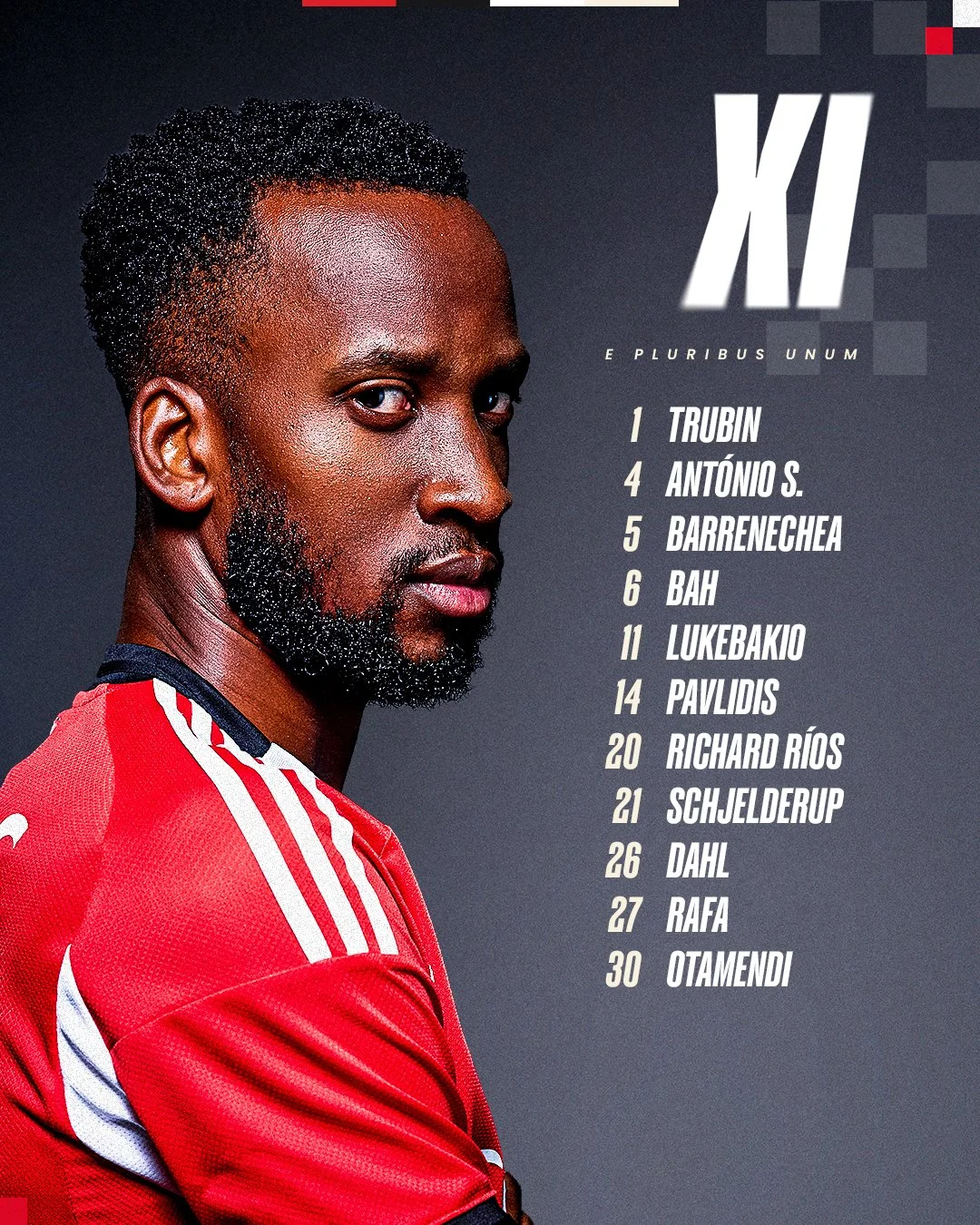 Стартовий склад Бенфіки: Трубін – Антоніу Сілва, Барренечеа, Ба, Даль, Отаменді – Ріос, Шельдеруп, Рафа Сілва – Люкебакіо, Павлідіс