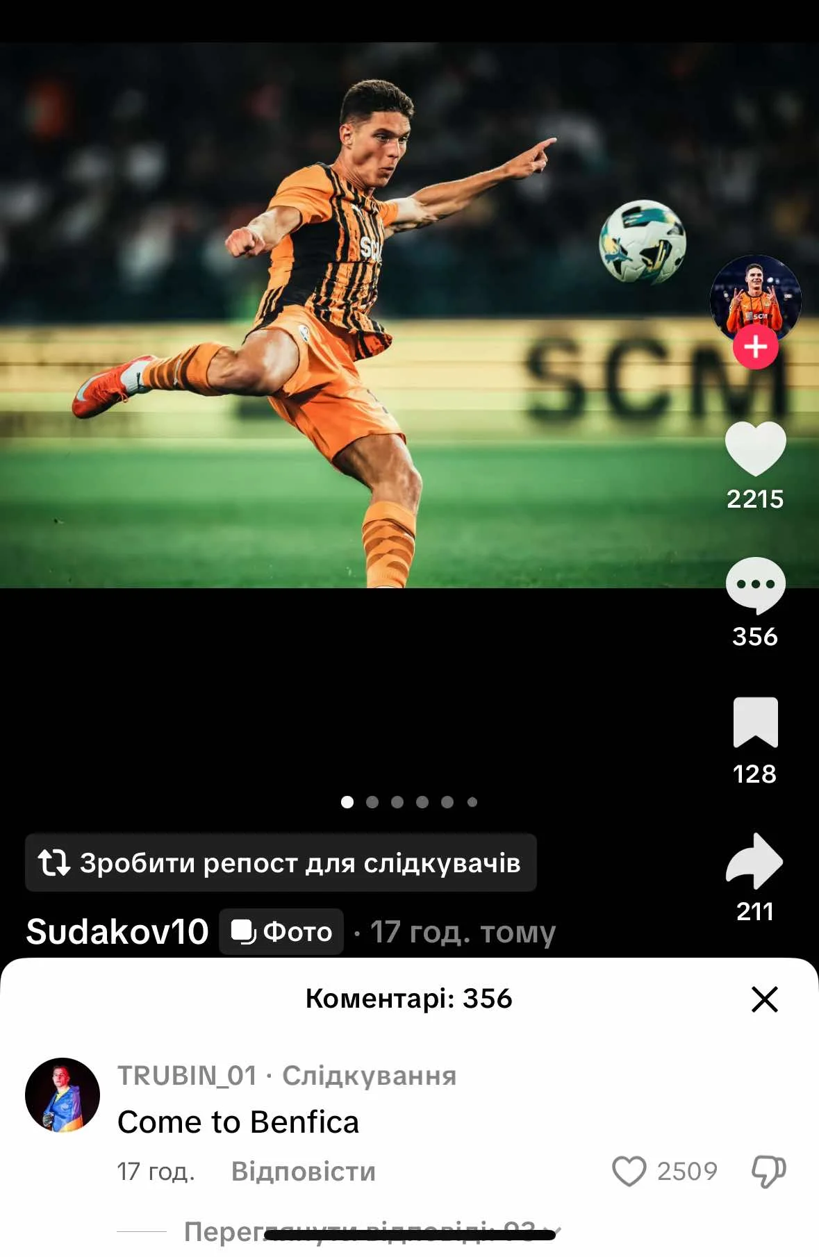 Але красномовнішим став коментар його екс-одноклубника, а нині гравця Бенфіки – Анатолія Трубіна. Воротар написав коротке послання: "Переходь у Бенфіку ("Come to Benfica" в оригіналі)".