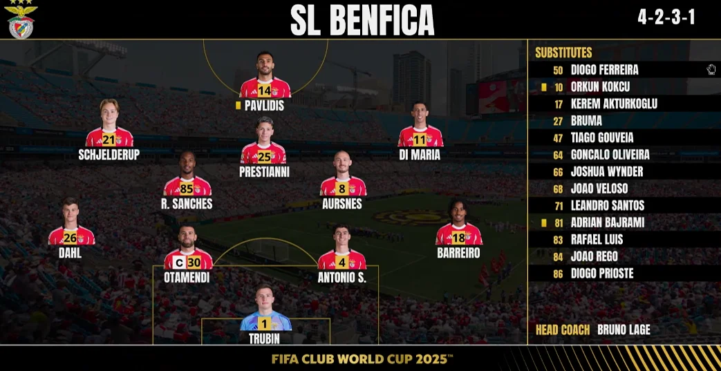 Бенфіка у рамках 3-го туру групового етапу Клубного чемпіонату світу-2025 перемогла Баварію (1:0). Звіт про матч читайте на "Футбол 24".