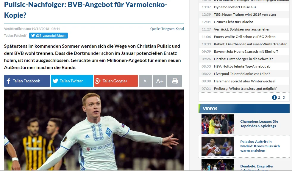 Як би не занепадав український футбол, талантами наша земля не бідніє. Півзахисники збірної України в ціні напередодні старту зимового трансферного вікна. Маліновського сватають в Рому та Мілан. За 21-річного Циганкова пропонують від 16 до 20 мільйонів євро. Остання новина в ці дні чи не найбільш обговорювана в інформаційному просторі. До справи долучились закордонні ЗМІ. Sport.de, посилаючись на Кирила Крижановського, пише про предметний інтерес від одного з клубів Бундесліги. Німецькі джерела подають інформацію так: український журналіст максимально прозоро натякнув, що найбільш конкретну, хоч і неофіційну, пропозицію сформулювала Борусія Дортмунд. Клуб, в який з Динамо вже переходив Андрій Ярмоленко, був готовий викласти на стіл 16 мільйонів євро плюс бонуси, але отримав відмову.