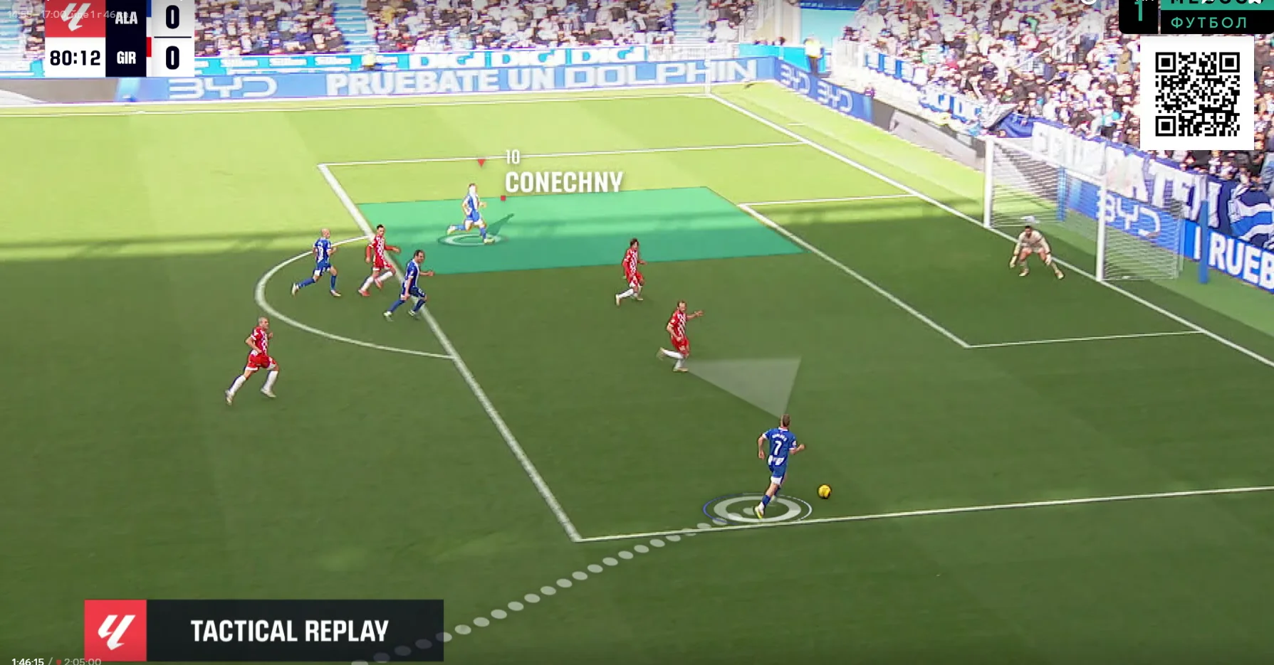 А уже на першій компенсованій хвилині до основного часу Віктор взяв участь у гольовій атаці. Після триходівки Циганков-Янхель-Арнау останній навісив, а Діарра виконав кікс. М'яч потрапив до Соліса, який прошив кіпера Алавеса ударом впритул – 1:0! Жирона несподівано перемагає, завдавши лише трьох ударів (1 у площину). Алавес переважав за усіма ключовими показниками (1,68xG – 0,56xG), але жахлива реалізація поховала команду Коудета. Каталонці піднялись на 7-му сходинку (28 очок). Від зони єврокубків підопічні Мічела перебувають на відстані двох балів.