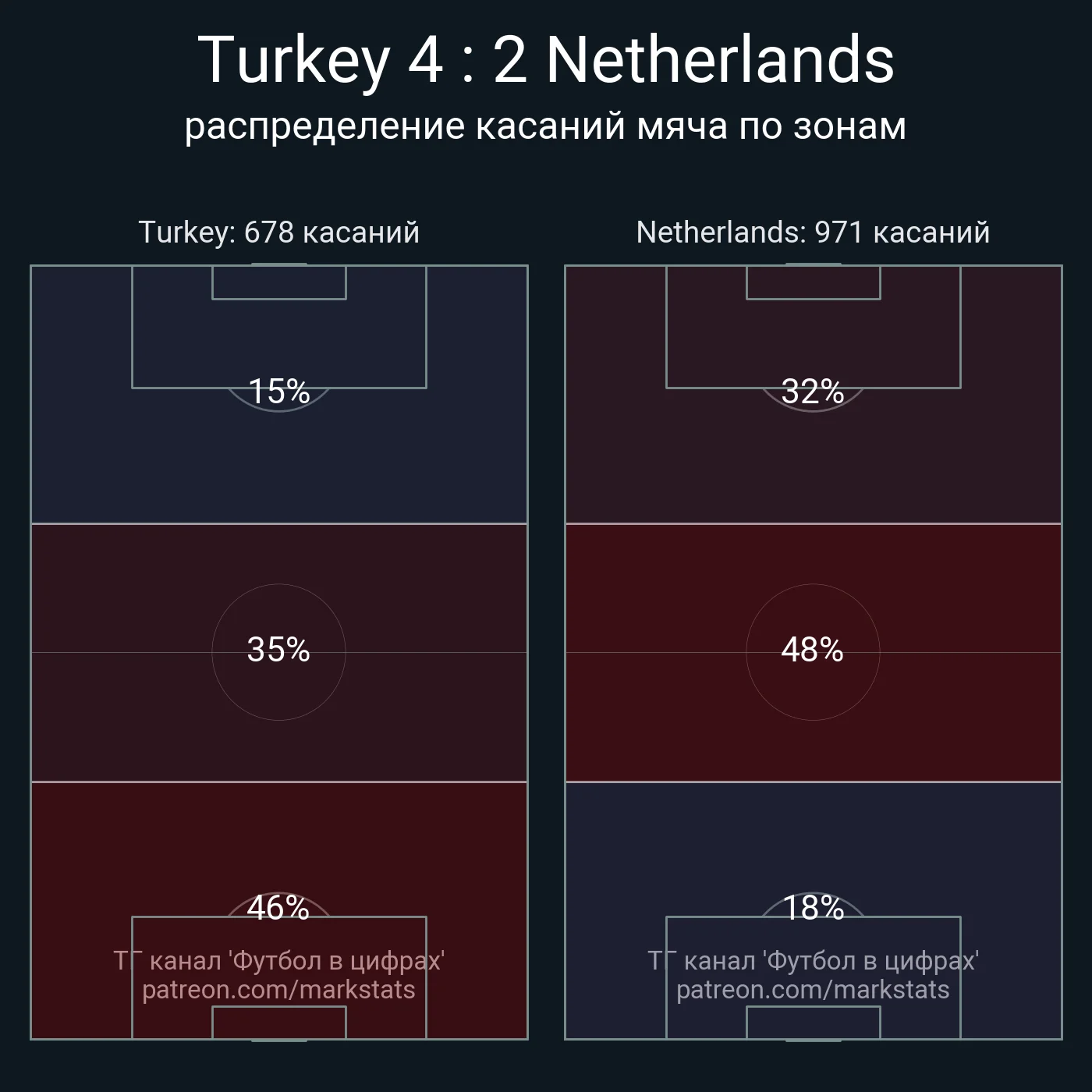 Зрештою, навіть на тлі поганої позиційної гри "оран'є" домінували територіально, не виходячи з чужої третини поля й поступово притискаючи турків. Протягом першої години матчу це не принесло успіху, але у підсумку Нідерланди ледь не забили три голи за 20 хвилин. Це – ознака топ-класу.
