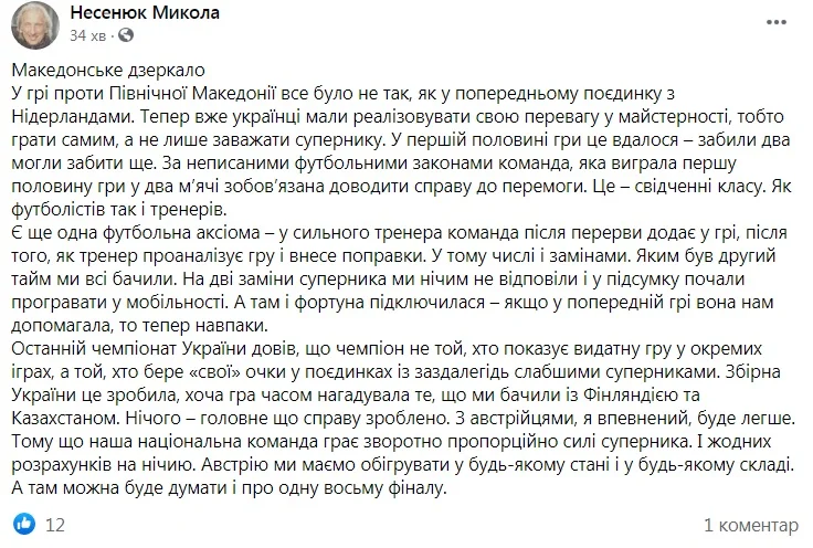 Директор департаменту із роботи зі ЗМІ футбольного клубу Динамо Микола Несенюк переконаний, що з Австрією команді Шевченка буде... простіше.