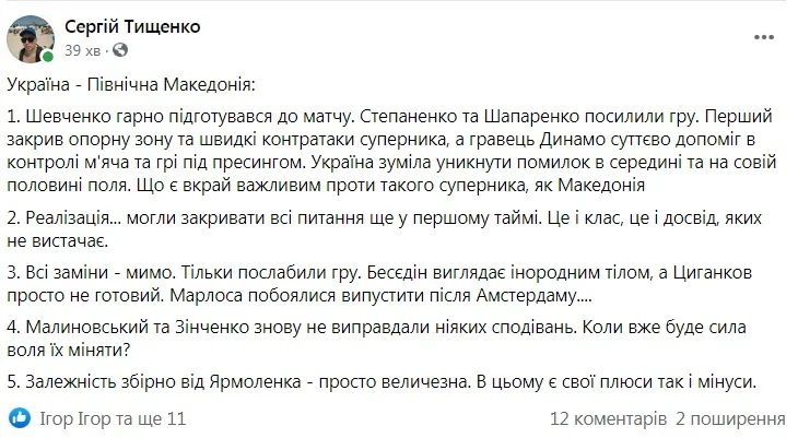 Журналіст Футбол 24 і Gazeta.ua Сергій Тищенко нагадує головному тренеру, що недоторканих у складі бути не повинно.