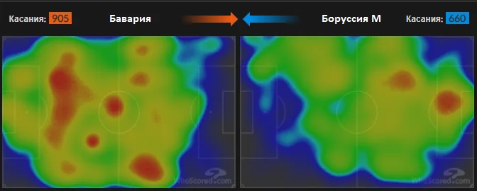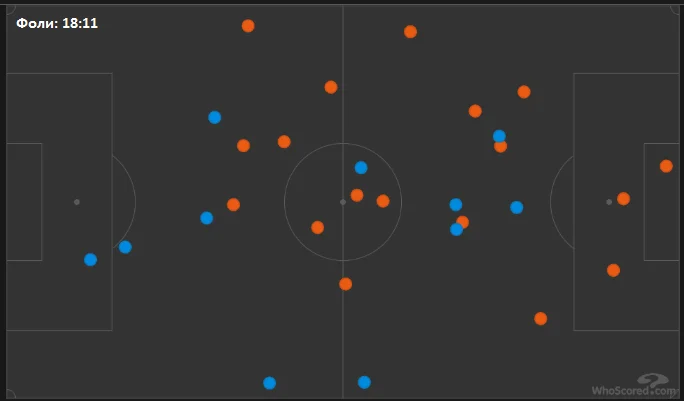 Потрібно відзначити одну цікаву особливість. Баварія значно більше фолила в процесі контрпресингу, але на мапі фолів помітно, що жодного порушення правил господарі не зробили на своїй третині поля.