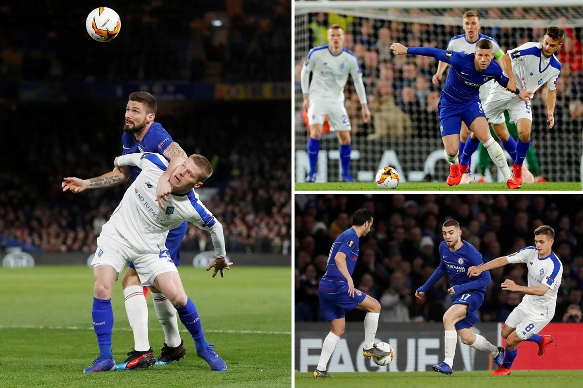Саррі зробив 6 змін у команді, яка почувалась "фізично і психічно виснаженою". Незважаючи на це, Челсі домінував над Динамо, яке вирішило сидіти неймовірно глибоко. У такий спосіб вони запросили до себе господарів, які швидко відкрили рахунок. Між цими двома командами проглядалась чітка прірва, і ще до перерви лондонці могли відправити суперника спати. Динамо дуже страждало від маневрів Жиру. Киянам пощастило, що VAR не застосовують у Лізі Європи, коли Кендзьора збивав Педро у своєму штрафному.