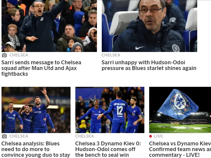 Ці 3 перемоги за 10 днів змінили обличчя правління Саррі після травматичної поразки у фіналі Кубка ліги від Манчестер Сіті. На папері здавалось, що Динамо може завдати проблем Челсі, який проводив 7-й матч за 18 днів. Команда двічі обіграла Ренн, який бив Арсенал. Лондонцям довелось поберегти декількох гравців основи, тому поза основою опинились: Рюдігер, Аспілікуета, Канте, Азар, Ігуаїн. Челсі переміг з різницею у 3 голи, але могло бути і 6. Київ виглядав покірним і обмеженим.