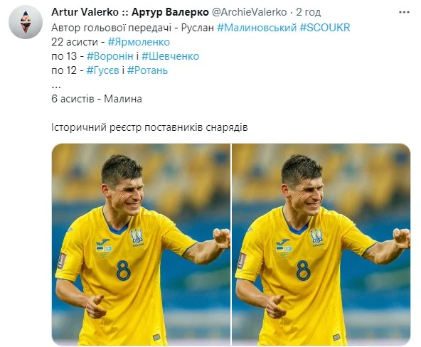 Архіваріус Артур Валерко наводить солідну статистику Артема у футболці головної команди.