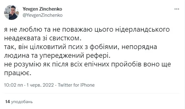 Спортивного тележурналіста Євгена Зінченка зі старту поєдинку непокоїв Данні Маккелі, непередбачуваний рефері з Нідерландів.