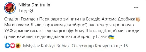 Футбольний журналіст, блогер і син легендарного динамівця Микита Дмитрулін пропонує змінити Львів на Глазго. Хіба що до моменту нашої перемоги у війні, Микито!