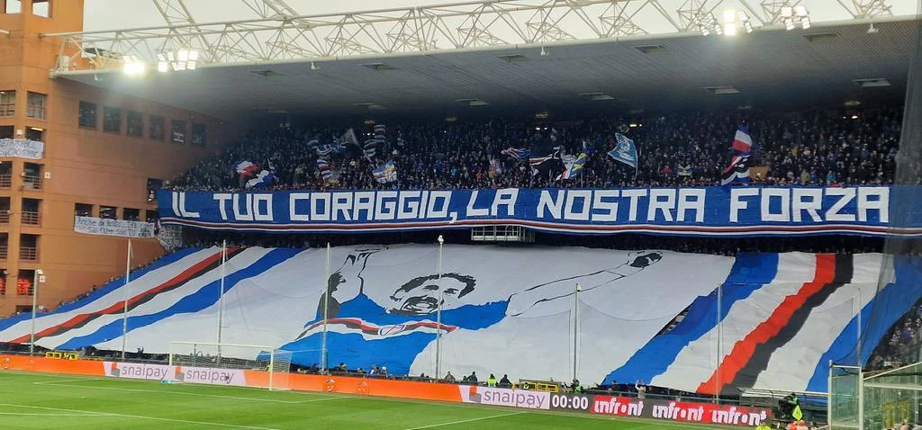 Банер фанатів Сампдорії в пам'ять про легенду клубу – Джанлуку Віаллі. "Твоя мужність – наша сила"