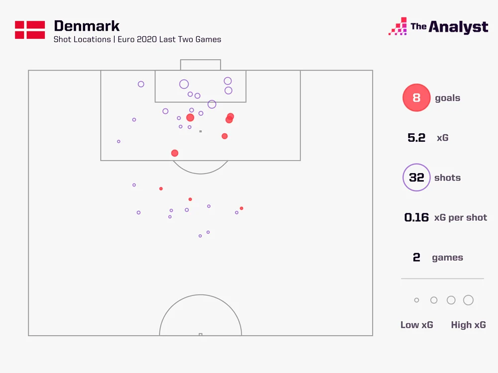 Знову ж таки, Данія не зловживає цим аспектом. Лонгшоти для Каспера Юлманда є лишень приємним додатком до загальної моделі гри, а не основною ідеєю, як у того ж Уельса з Бейлом. У скандинавів достатньо інструментів для зламу оборони через різні методи, але факт залишається фактом – ніхто так часто не б'є з-за меж штрафного, як Данія.