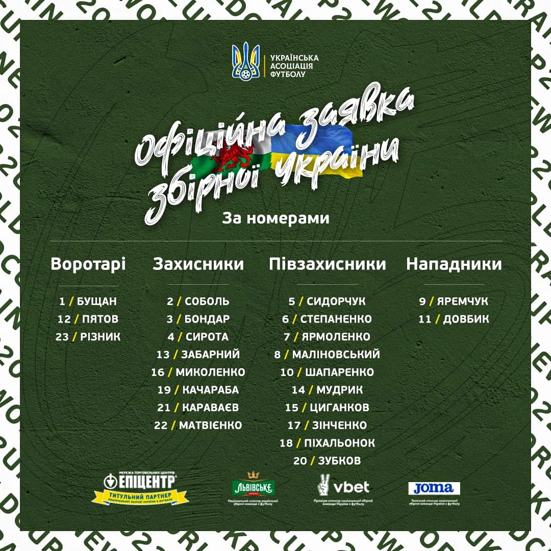 Заявка збірної України на Уельс: