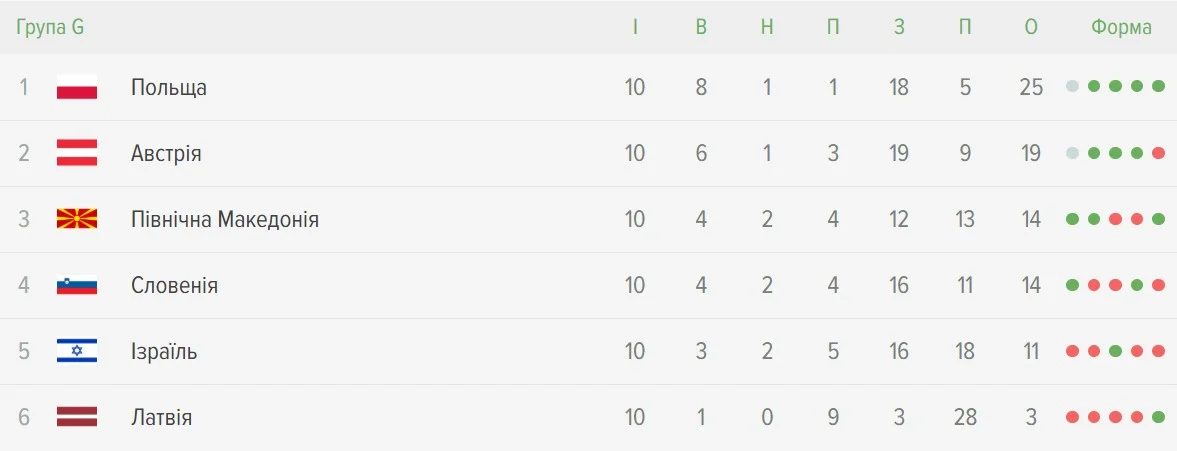 Ізраїль без Манора Соломона поступився Північній Македонії та фінішував на передостанньому місці. Ну а Польща в ролі лідера секстету вирвала яскраву перемогу над Словенією.