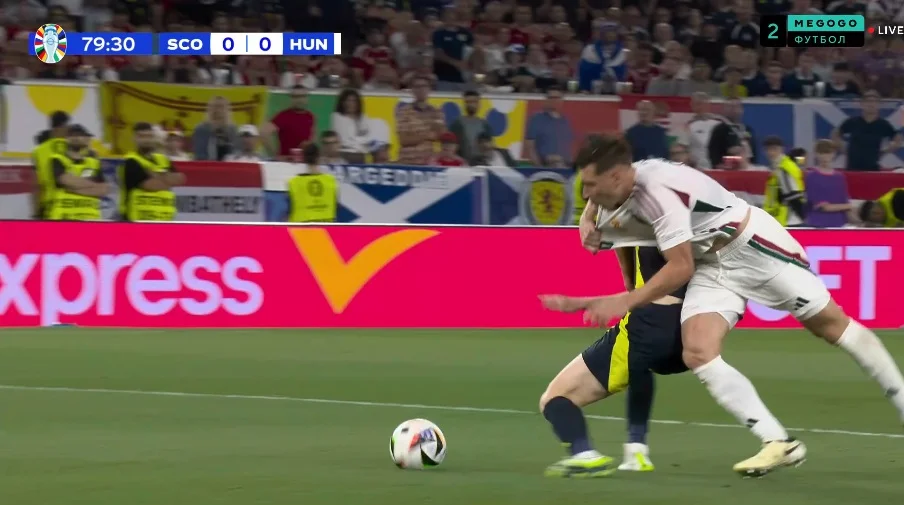 От тільки Угорщина й сама діяла пасивно. У перші 20 хвилин команда пресингувала тільки епізодично, та і тиск в середньому блоці був явно недостатнім. У другій половині тайму мадяри додали в інтенсивності пресингу та єдиноборств – і шотландці зі своїм ватокатом почали припуститися помилок, наражаючись на контратаки.