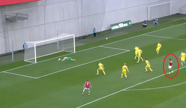 На 23-й же хвилині момент прийшов із шикарного закидання Мельниченка. Центрбек Полісся із центру поля закинув м'яч за спини візаві з Угорщини, організувавши Кревсуну вихід віч-на-віч – до речі, вривання Данила з глибини теж слід відзначити. Хавбек Борусії Д пробив другим дотиком, змусивши Печі виконувати топ-сейв!