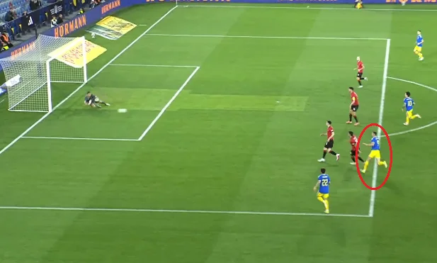 Особливо виділялись дії Маліновського, Гуцуляка та Яремчука. Роман завдав завдав дебютного удару в матчі, змістившись з лівого флангу та пробивши з-за меж штрафного. Стракоша спіймав м'яч.