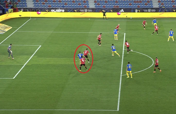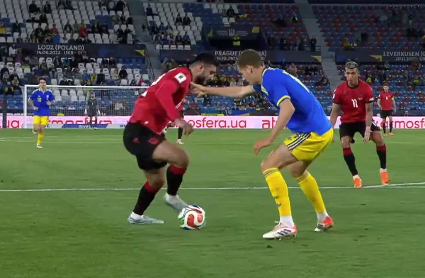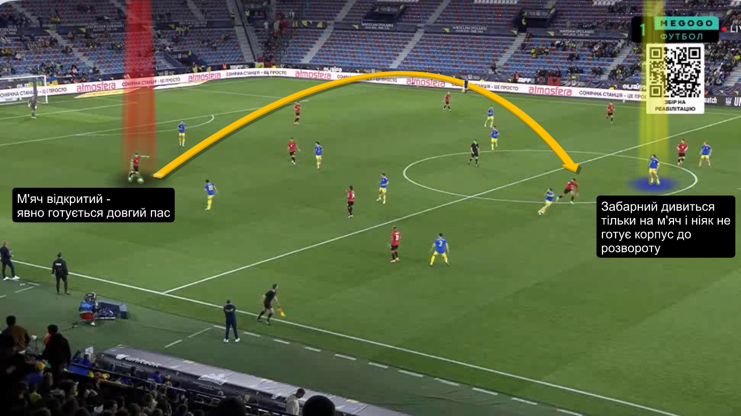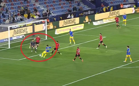 На цій же хвилині українці увімкнули пресинг і відібрали м'яч на чужій третині. Після цього пішов пас на правий край штрафного, звідки пробив Яремчук. На жаль, точності Роману забракло.