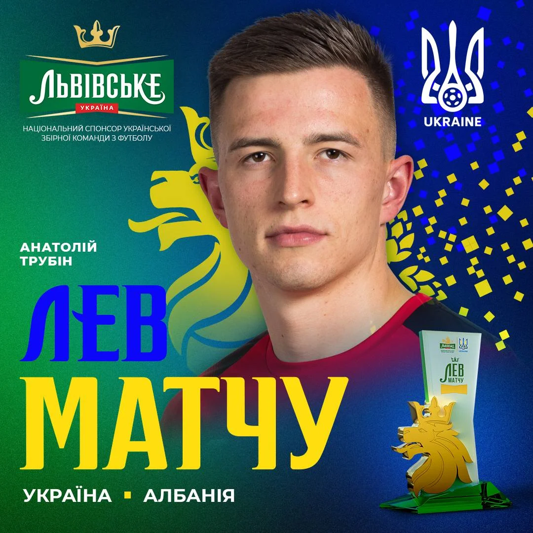 Нагороду "Лев матчу" отримав голкіпер збірної України Анатолій Трубін, повідомляє прес-служба УАФ.