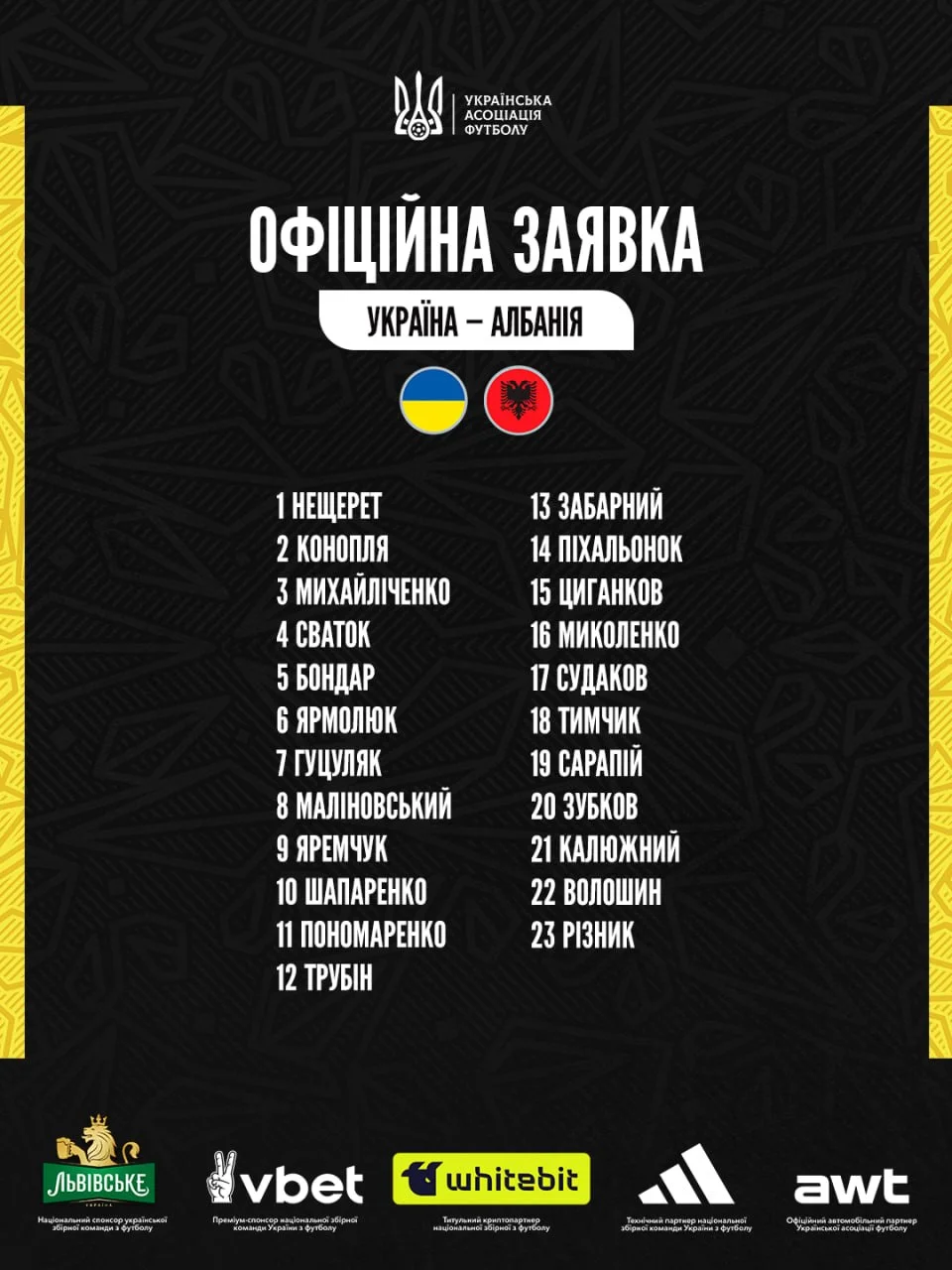 Заявка збірної України: