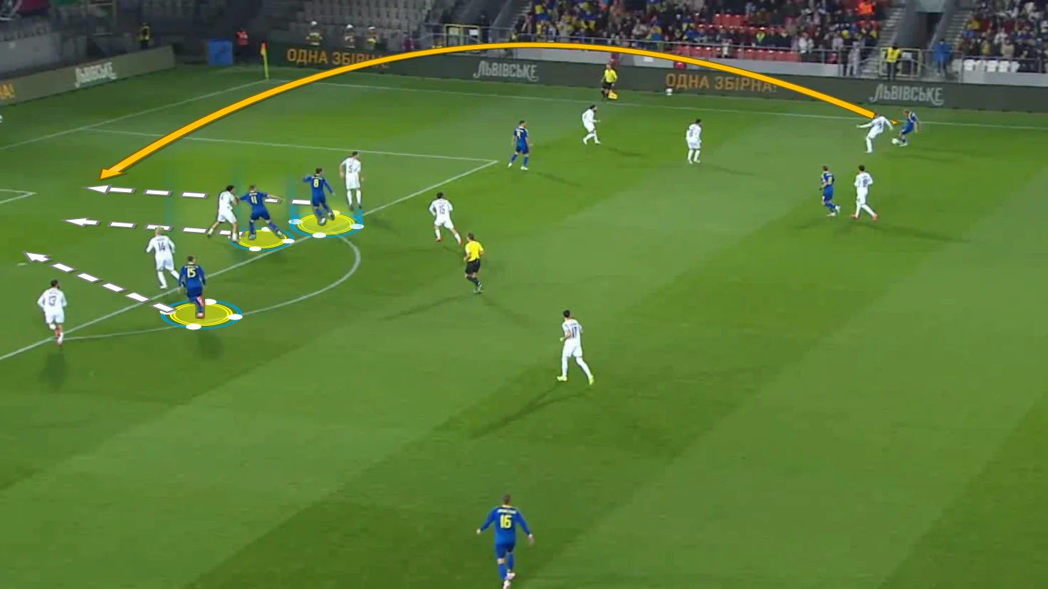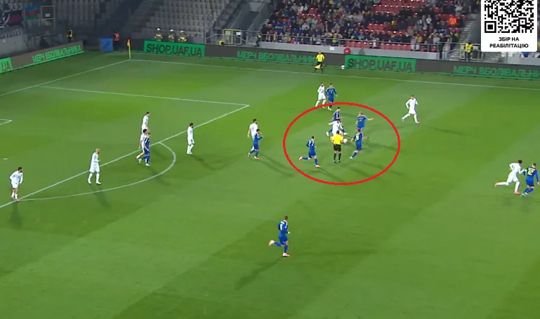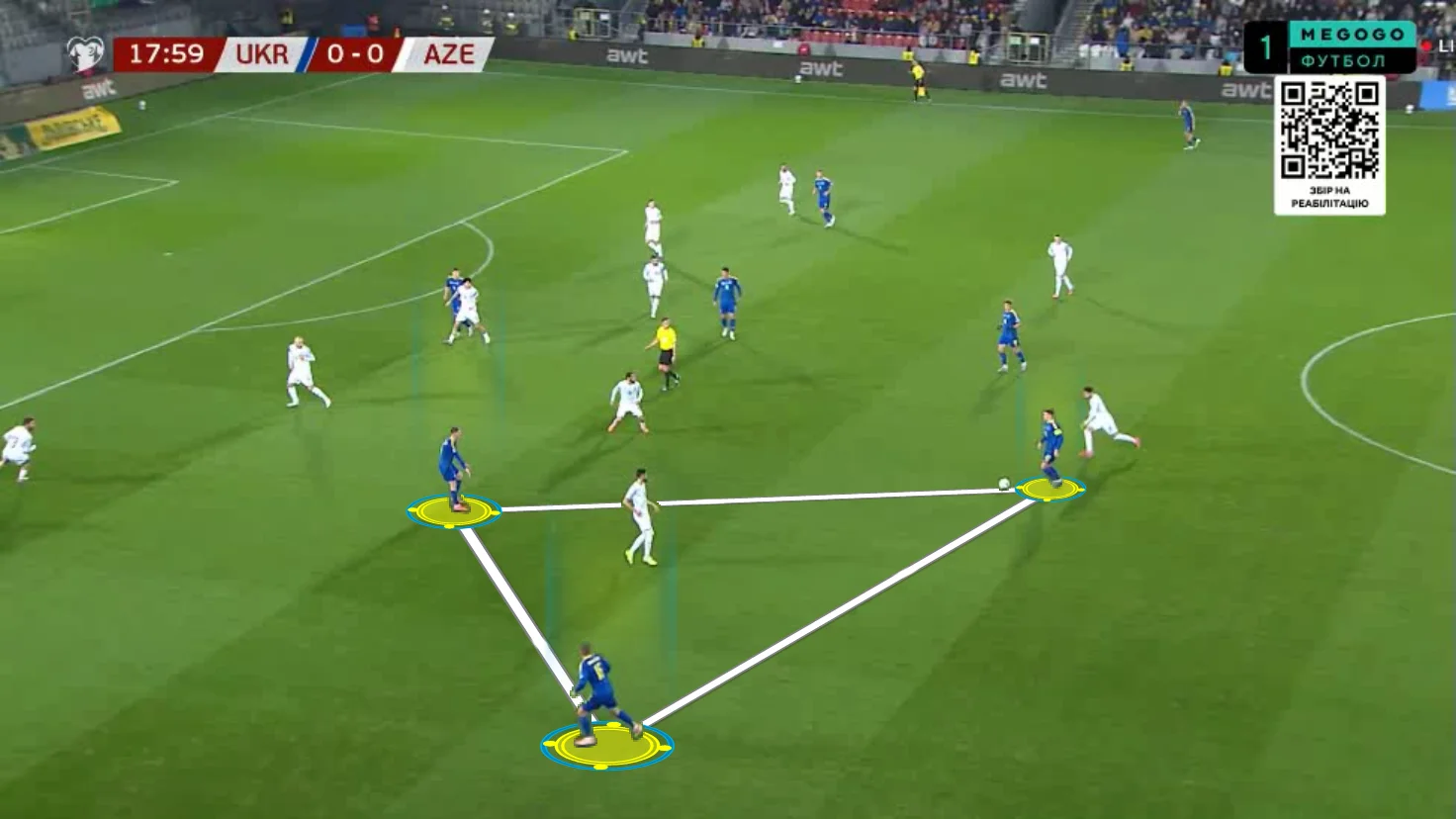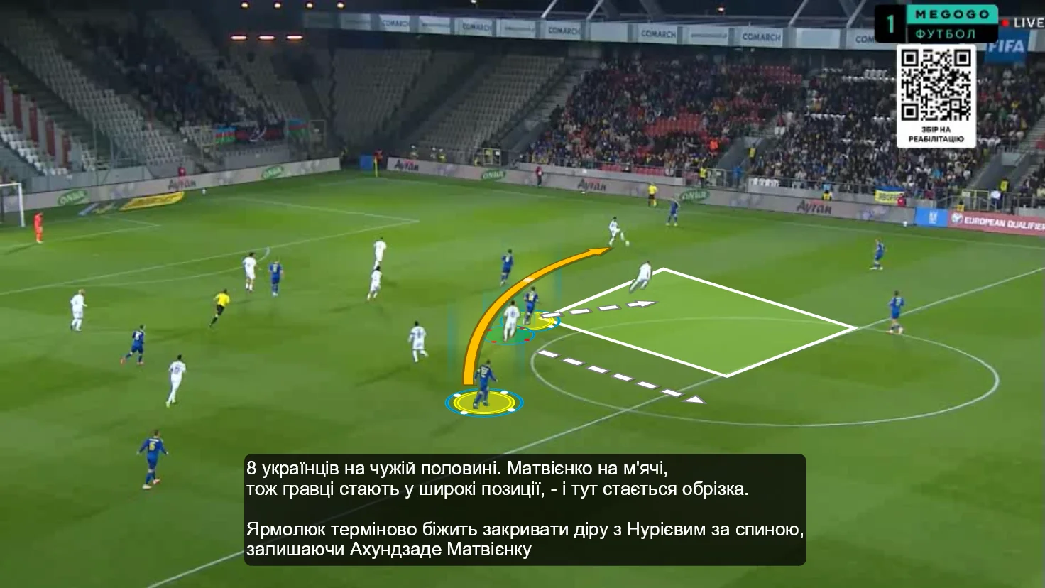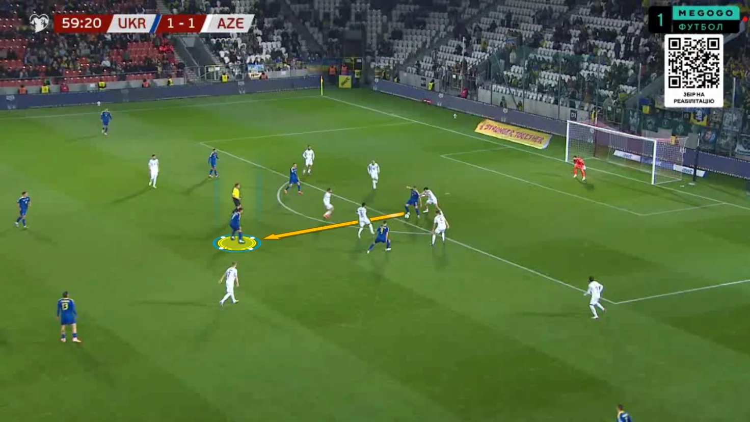 Третій позитив, який явно підгледіли в Ісландії та Франції – спроби перевантажувати останню третину, заходити на чужу половину всім складом і заповнювати простір між лініями. Там спробували виконувати короткі обігрувати 1-в-1 і навіть фінтити – в одному з епізодів Маліновський вийшов з-під тиску "фінтом Зідана". Азербайджанці дуже вразливі під високим темпом руху м'яча й відкривань, а також не люблять нетривіальні рішення суперника.