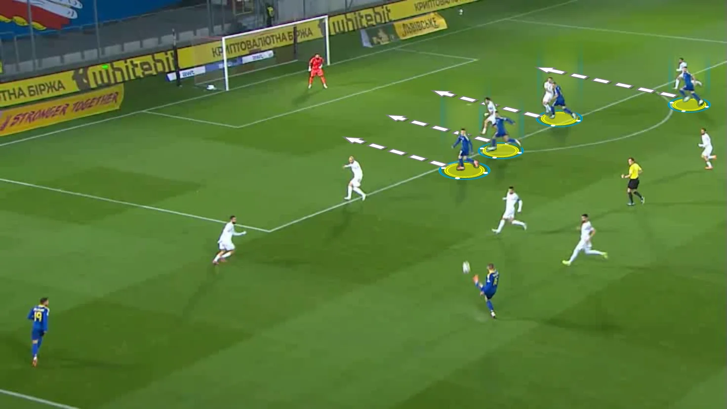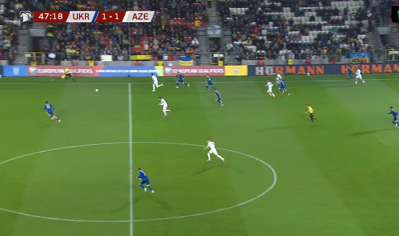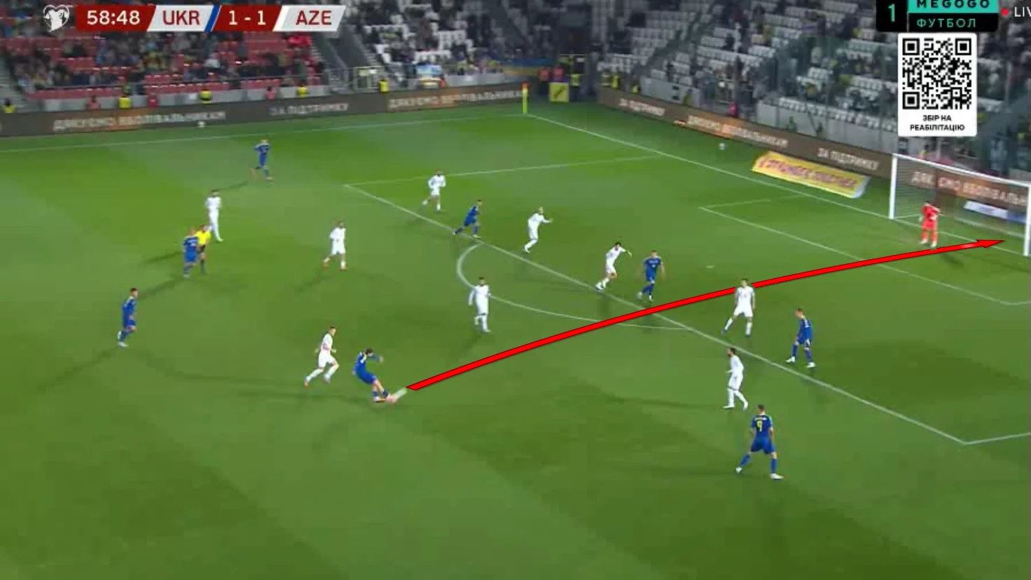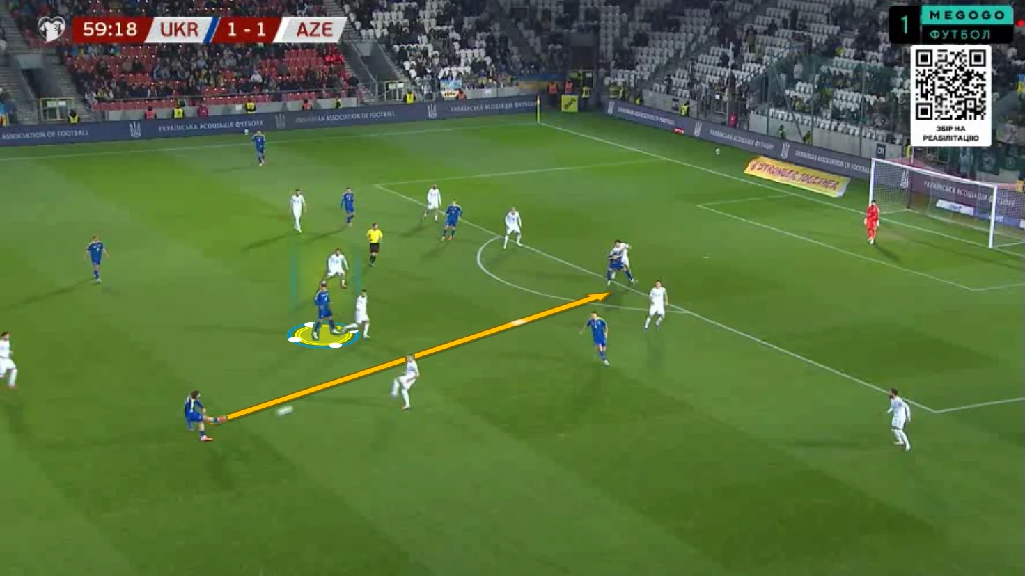 Враховуючи велику кількість боротьби та слабкість азербайджанців у штрафному, Довбик здавався ідеальним варіантом на вихід в основі. Неймовірно, але Сергій Ребров так і вчинив. Ну а за обіграші 1-в-1 і швидкісні прориви на лівому фланзі прогнозовано відповідав Волошин.