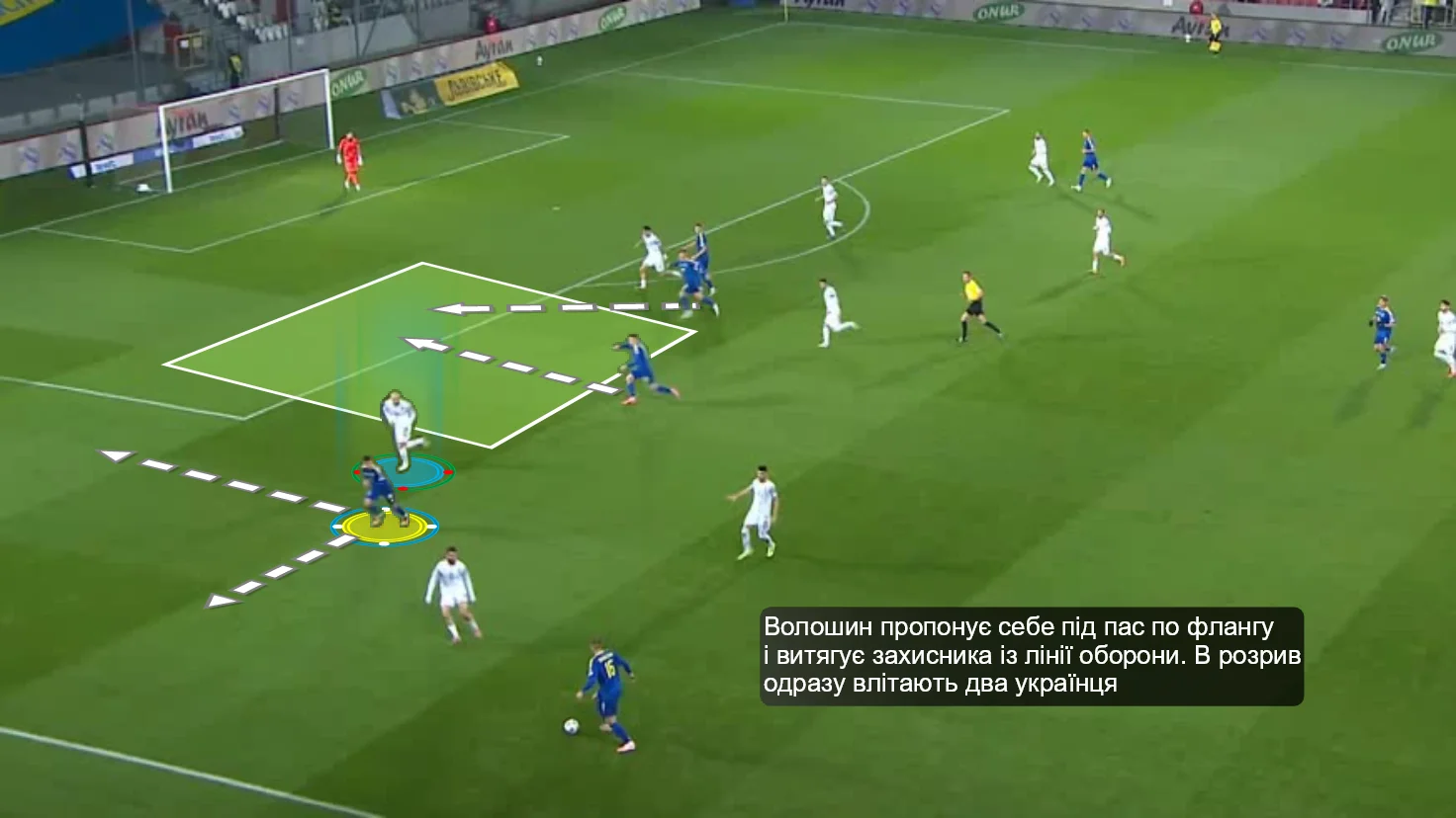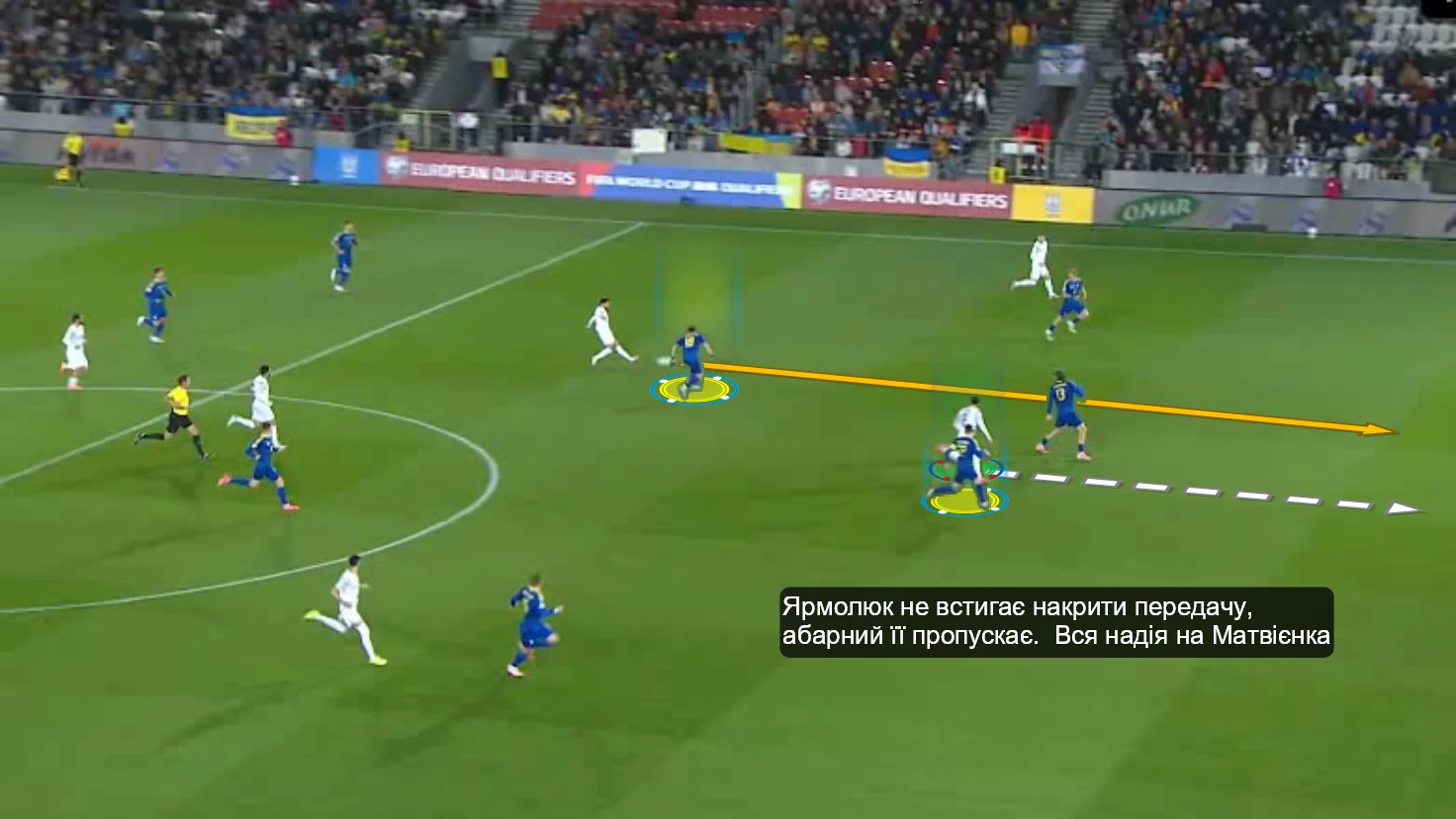 Загалом, Україна домінувала на чужій половині, постійно створювала лінії передач на чужій третині, швидко повертала м'яч після втрат, успішно пресингувала й створювала моменти. Дещо дратувала лишень зарядженість Маліновського на дальні удари, які відверто не йшли – і при цьому ігнорували відкривання партнерів.